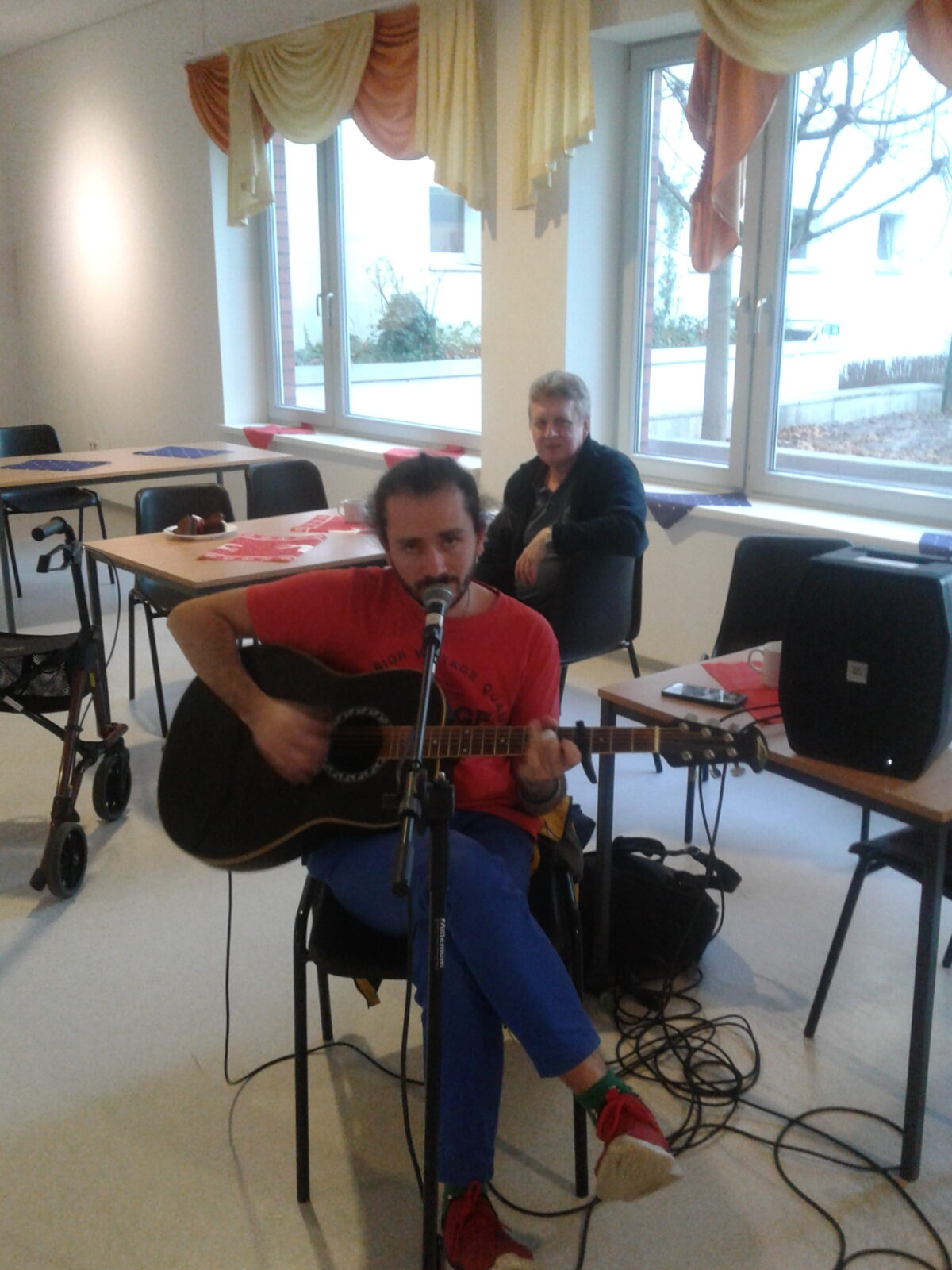 Der Musiker Alexei spielt Gitarre