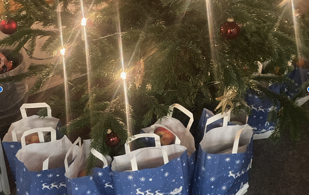 Die Übergabe der Weihnachtstüten fand am 23.12. und 24.12. unterm liebevoll von den Bewohnern geschmückten Weihnachtsbaum statt. Ein Bewohner sagte: „Das ist das erste Geschenk, das ich hier bekommen habe“.